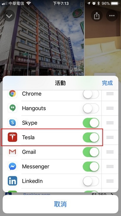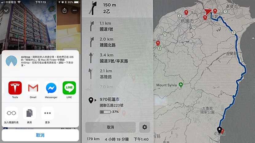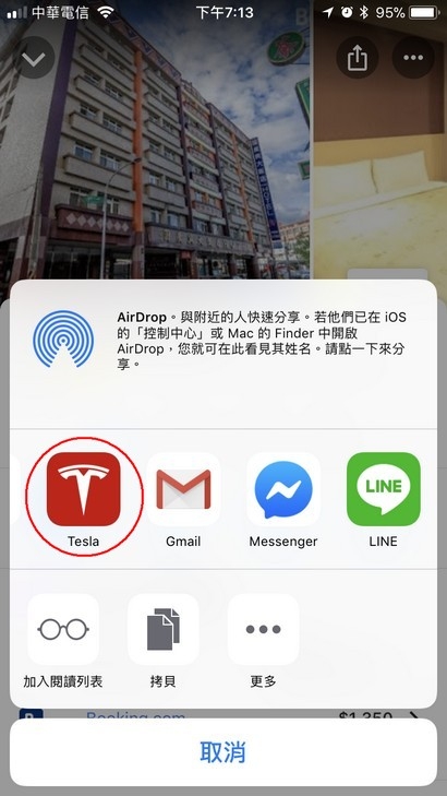 有時候邊開車邊討論著要等等要吃什麼餐廳,同車友人鎖定一間不錯的餐廳,於是直接使用手機分享了地點給車用導航,車子直接規劃好接下來的路線,這樣的使用方式是否很方便呢? 今天,我們就來教一下該如何完成上述的分享功能,讓移動到目的地變成更簡單! 【第一步】安裝 Tesla APP (如果已安裝請跳至第二步) 下載 Tesla 的官方 APP 後,使用帳號密碼登入官方 APP,再完成手機跟車載系統進行藍芽配對。 【第二步】使用手機 Google Map (APP或網頁版均可),找到要前往的地點,按下分享按鈕後選擇要分享給特斯拉APP。( 如果 Tesla APP 有出現在清單中,直接跳第三步) 清單當中如果沒有出現特斯拉的APP,就按下「更多」進行設定,讓 Tesla APP 成為預設程式。 按下更多之後會跳出所有可以接受分享的 APP 名稱,找到特斯拉的 APP 圖示,將他設定為開啟。 【第三步】選取分享給 Tesla APP,等待傳送完畢即可。 等待傳送完畢,車載系統接收目的地資料並且規劃好路徑,還會貼心提醒剩餘電量資料,是否很方便呢? 快把這招學起來,讓未來出遊不再手忙腳亂,讓旅途更輕鬆方便!