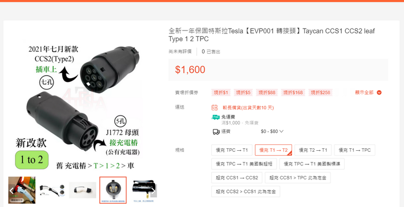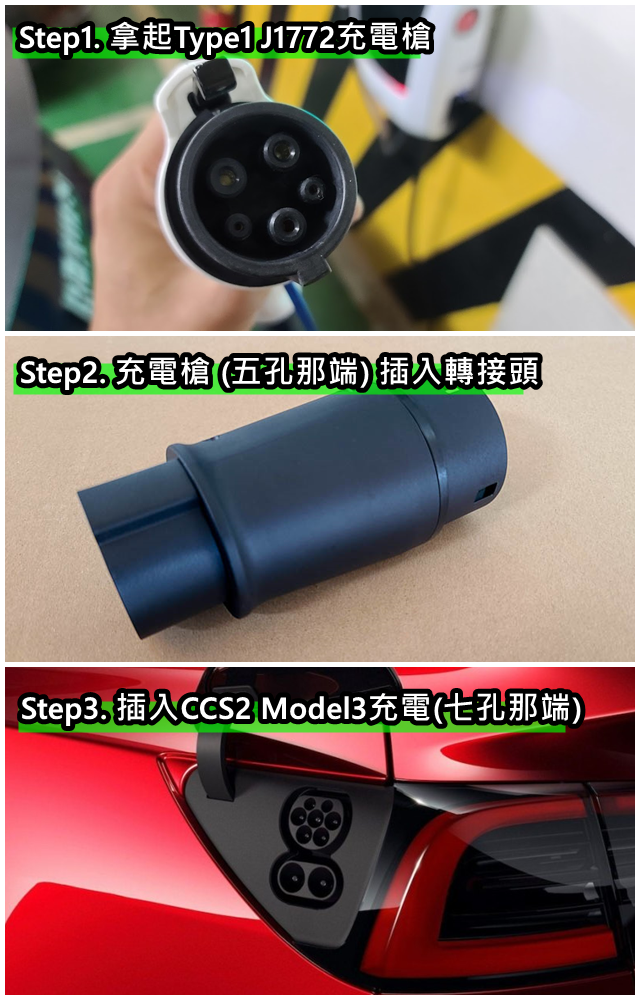 【前情提要】 特斯拉在台第三季新車會在 8/12 抵達台北港,交車應該就從 8 月中下旬展開,這也代表許多車主很快就會開著配備 CCS2 新充電孔的 Model 3 上路。 CCS2 與既有 Tesla TPC 不相容,新車主去超充要找專門的充電槍使用,這一點特斯拉已經有提前準備好,也就是讓超充變成雙規格,之前已經介紹過好幾次,這裡不多說。 今天要講的,則是第三季起的 CCS2 Model 3 新車主如何使用停車場裡最常見的 Type 1 (J1772) 充電器為 CCS2 新車充電?答案是:一顆轉接頭。 ▲ 在停車場常見的慢充都是 Type 1 = J1772 規格,特斯拉新的 CCS2 Model 3 必須另購轉接頭才能充。 【名詞解釋】 公共停車場的那些 AC 慢充充電器,充電槍用的規格 SAE J1772 = Type 1 第三季登台的 Tesla Model 3,充電孔是 CCS2 CCS2 向下相容慢充規格 IE62196 = Type 2 所以說,CCS2 Model 3 新車主用 J1772 充電器充電,需要的轉接頭叫做:Type 1 轉 Type 2。 【解決方案】 特斯拉沒有送這個轉接頭,所以 CCS2 新車主必須自己額外買,而且目前沒有原廠貨,只能找外頭第三方業者出的產品。 例如以下這顆已經在販售的 Type 1 to Type 2 轉接頭,售價 1,600 元,只要車上有它,CCS2 Model 3 車主去到外頭停車場,接上轉接頭就能使用 AC 慢充,停車吃飯逛街一樣可以充電。 ▲ 這顆轉接頭是 Type 1 轉 Type2,一端接上 J1772 充電器,另一端就可以充第三季登台的特斯拉新車。 ▲ 轉接頭一端插充電槍,一端插 CCS2 Tesla 新車,就可以充遍各大停車場的 J1772 慢充。 ▲ 轉接頭一端有七個孔的就是 Type2,要插特斯拉車上,可以實現 AC 慢充。 ▲ 五孔的這一端,是插停車場內的充電器 SAE J1772 = Type 1。 如果還是沒看懂,下面這張圖就是 Type 1 (J1772) to Type2 轉接頭的使用方式: 為何上面只放示意圖呢?那是因為目前台灣還沒有任何一台 CCS2 Model 3 可以讓我插,目前只能這樣說明。 不過為了確認這個轉接頭能順利過電,我也透過了一個非常荒謬的四次轉接轉回 TPC Model 3 來測試它是否運作正常 (很扯,但怕搞混大家,這裡先不提);結果轉接頭是有過電、過程沒出現問題,雖然測試對象是 TPC Model 3,但至少轉接頭是可以順利充電的喔。 ▲ 手邊只有 TPC Tesla Model 3,透過多次轉接,先確認 Type 1 to Type 2 轉接頭會過電,結果是可以用的。 總結以上,今年第三季開始領車的 CCS2 Model 3 新車主,想要用到外面停車場的 J1772 充電器,只須在車上備妥這顆轉接頭就可以了。 根據經驗,轉接頭在 AC 慢充這邊的問題不大,真正的挑戰在 DC 快充以及特斯拉超充 (例如想用 TPC 超充轉回 CCS2 車子,或者反過來),所以 CCS2 車主們此刻先備好慢充轉接頭即可,DC 快充的轉接頭產品請繼續觀望,等到看到明確的測試之後再決定是否出手。 > 商品洽詢:4Tesla (蝦皮賣場) 【推薦閱讀】 台灣特斯拉換CCS2 新充電規格:新舊車主都該知道的八個重大影響 ... Tesla 台灣第三季開始交付CCS2 充電規格電動車,目標七月底前完成全台超充雙規